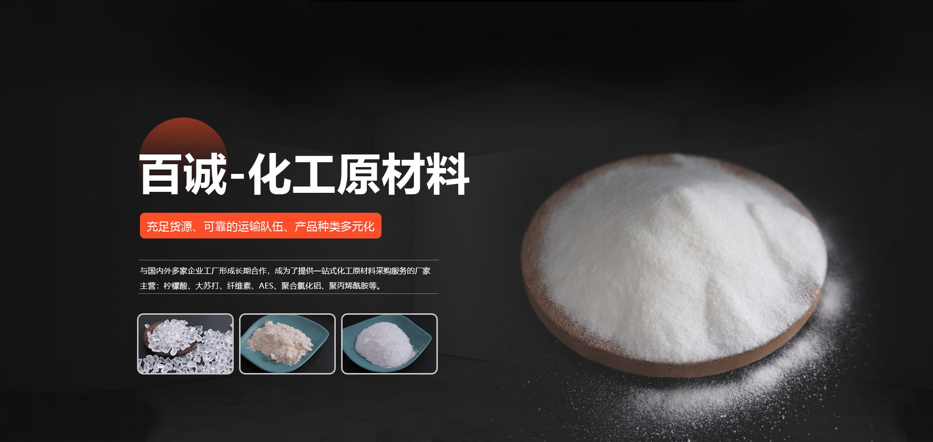 成立于山東的濰坊百誠化工有限公司多年來與國內(nèi)外多家企業(yè)工廠 形成長期合作,形成了競爭力的化工原材料供應、銷售和服務 渠道,主營:大蘇打、葡萄糖、檸檬酸、纖維素、消泡劑、AES等。